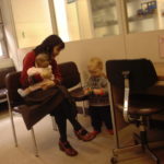 愛育病院は現在改修工事中で、産婦人科外来も2階に移っていた。なんだかピンクで統一されててとてもきれいでいい感じ。予防接種はその奥の母子保健科で実施されていた。