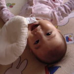 ゆうべは初めての2回食だったので、蛋白質を中心に与えてみた。わりとおいしそうにぱくぱく食べるので、いい調子と思っていたのだが、、、、。本人は別にかゆそうでもなく、5時間半はぐっすり眠ってくれた(いつも長くて4時間なのでこっちもぐっすり寝られた)。