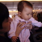 飛行機の中ではさぞかし日南子が騒ぐだろうと思っていたが、全くぐずらずいい子であった。スチュワーデスさんからマンナ(ビスケット)を貰って食べたり、イヤホーンで遊んだり上機嫌である。