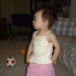 最近、日南子もカー君のようにヒステリーをおこすのだ。例えば、持っているものを取り上げたり、遊びを中断させたりした時に「いやーーーー!!!!」とばかりにそっくりかえって大泣きするのだ。これには、ほとほとまいっている私。なんか1歳から1歳半の子供っていらいらしやすいらしいが ほんとうだ。言葉でうまく表現できないかららしいが、はやくしゃべれるように努力しなくちゃねえ。