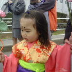 着付けもそうとうゴネて、やっとこさ着物を着せ、いざ出発。集合場所の校庭にはたくさんの子どもが同じ衣装を着て集まっていた。日南子はここでも機嫌最悪。パパにずっと抱っこされて集合場所からどんどん遠ざかっていく。裕月はさっきも寝たのにまた眠いらしく、うつらうつらし始める。