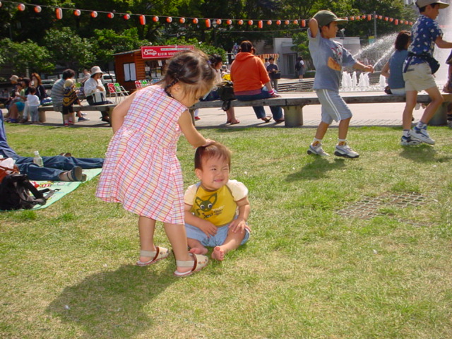 おばあちゃんは空港まで一緒に来てくれた。空港で飛行機の発着が見れるレストランに入る。飛行機が飛び立つと日南子、大喜び。ゲートをくぐっておばあちゃんに手を振って別れる。機内ではうまいことに裕月がすぐ眠ってしまった。日南子はミッキーの絵本を読んだり、パパとお話したりして過ごす。裕月は私の膝で、日南子はパパの膝の上だったが、もうこれだとかなり狭い。来年は日南子もワンシートだね。着陸寸前に裕月が目を覚ます。裕月はそれ以降、疲れたのか機嫌最悪。電車の中でも身をのけぞらせて大声を出して泣く。やっぱり赤ん坊には大移動は疲れてきついみたいだ。